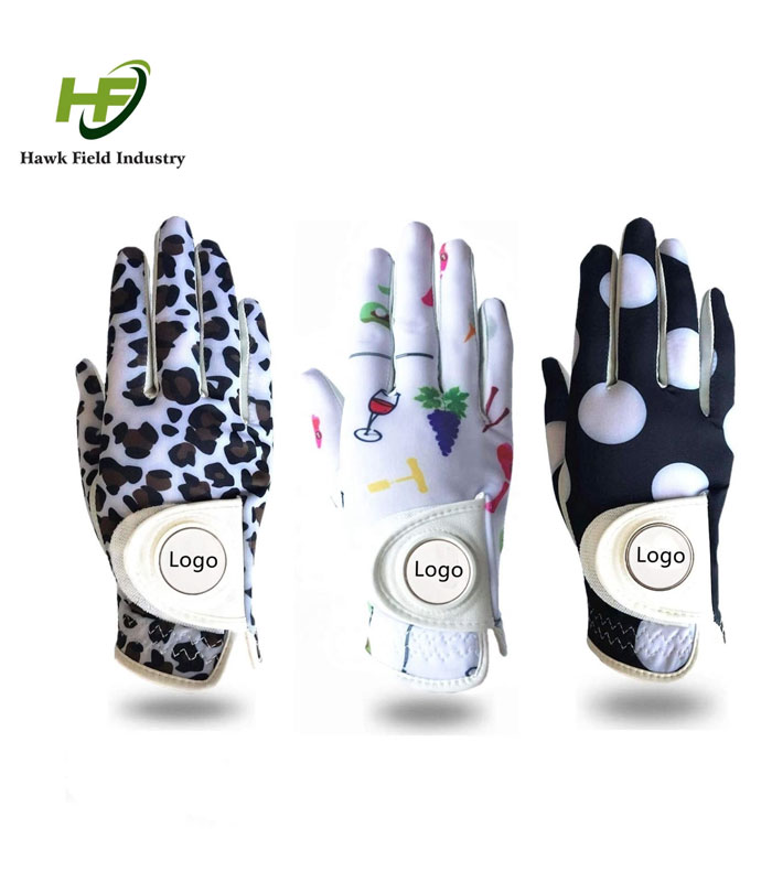 Sublimation Lycra Back Side with Leather Front Golf Gloves